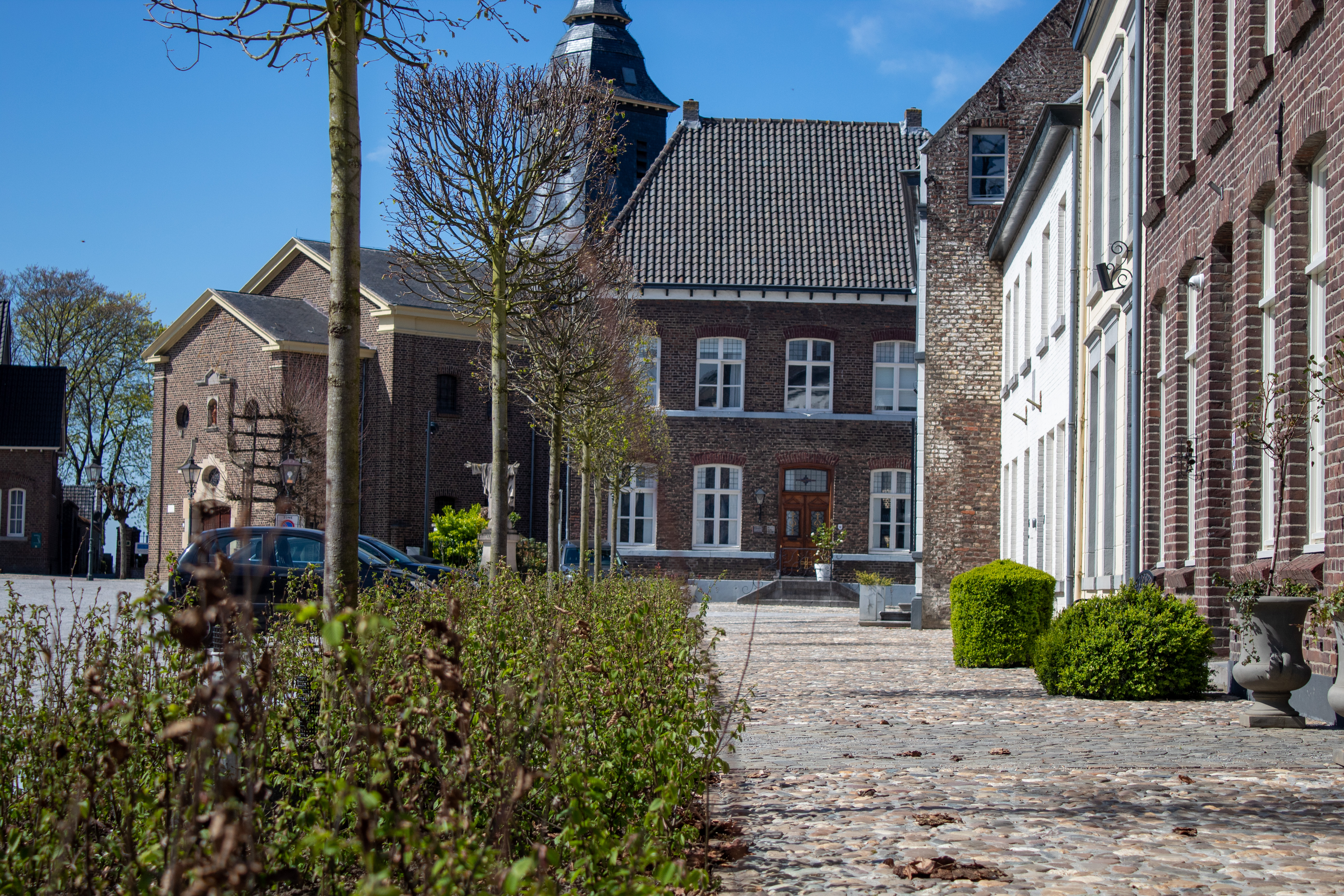 Een mooie, maar ook een uitdagende omgeving om in te werken. Vakspecialisten van BLM Wegenbouw zijn volop bezig deze klus de klaren. We leggen onder andere een nieuw regenwaterriool aan en vervangen/vernieuwen een gedeelte van het bestaande vuilwaterriool. Een duurzaam klimaatadaptief onderdeel in het plan is het afkoppelen van het regenwater. De bestaande verhardingen worden opgebroken en grotendeels hergebruikt in de nieuwe situatie om de historie van de kern te behouden.